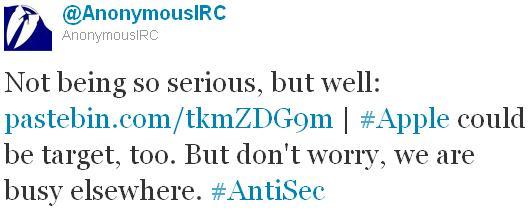 Apple Is The Latest Company To Be Targeted By AntiSec, By Ubergizmo. Top Stories : Xperia Play Review, HTC Sensation Review,